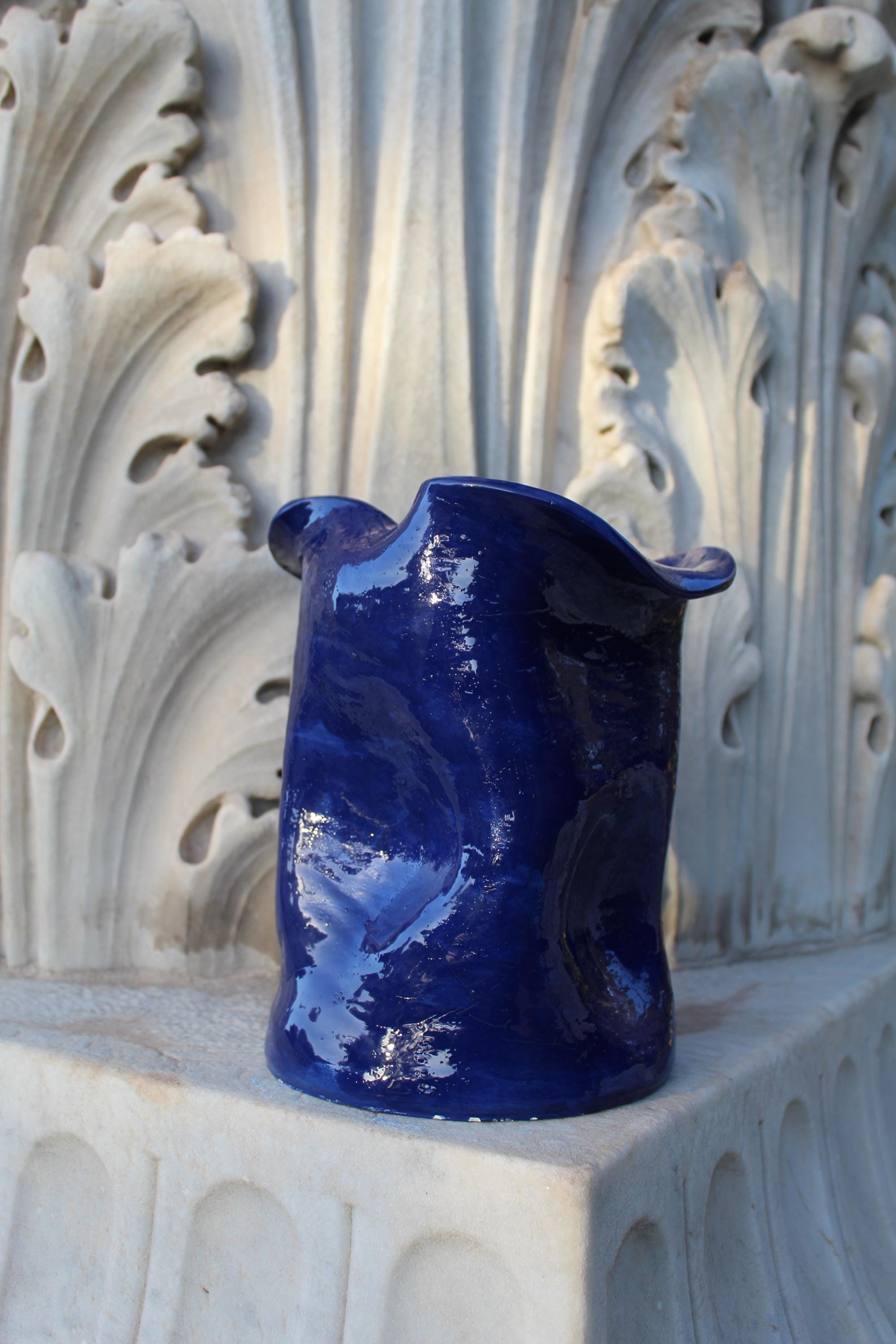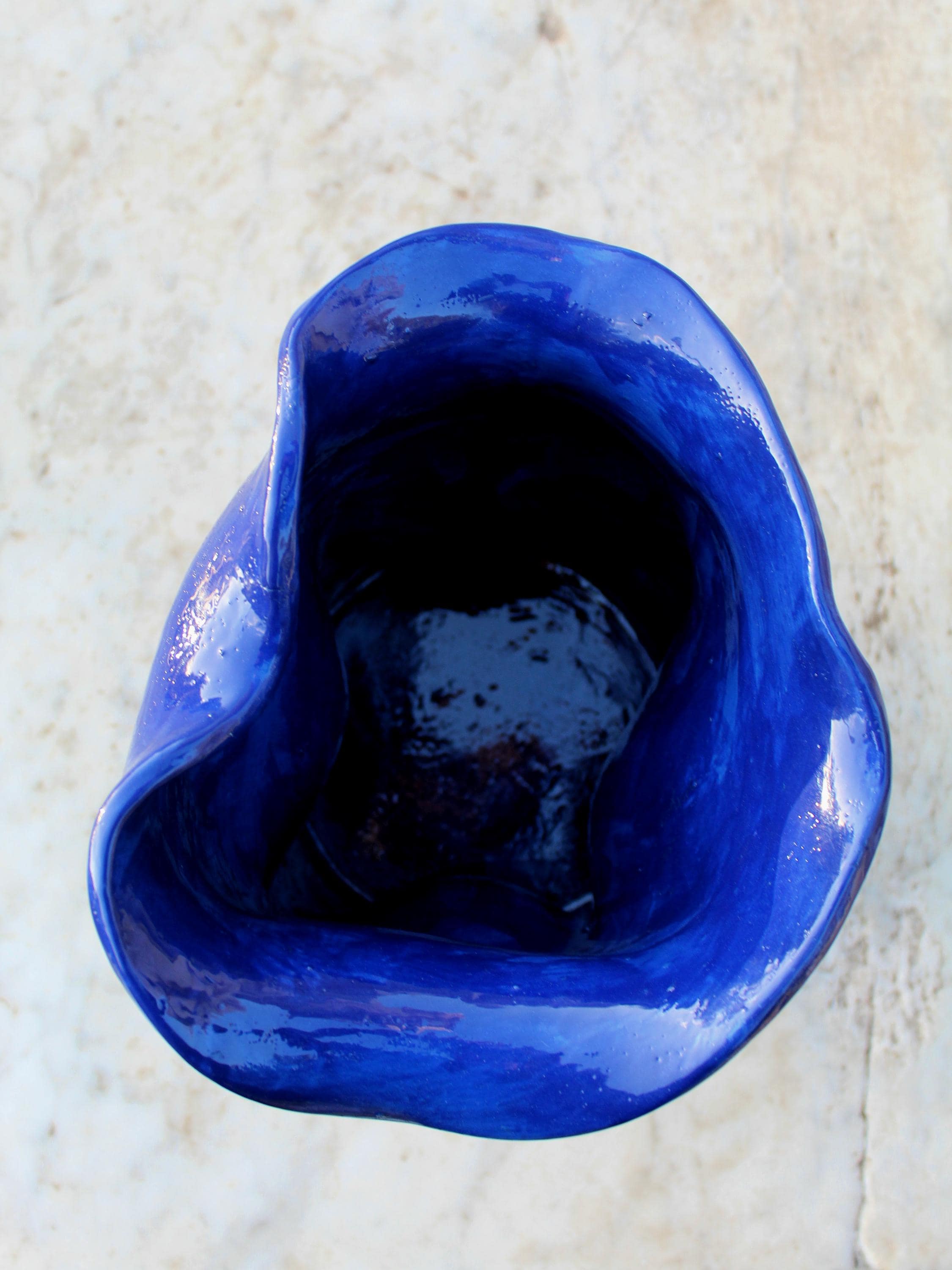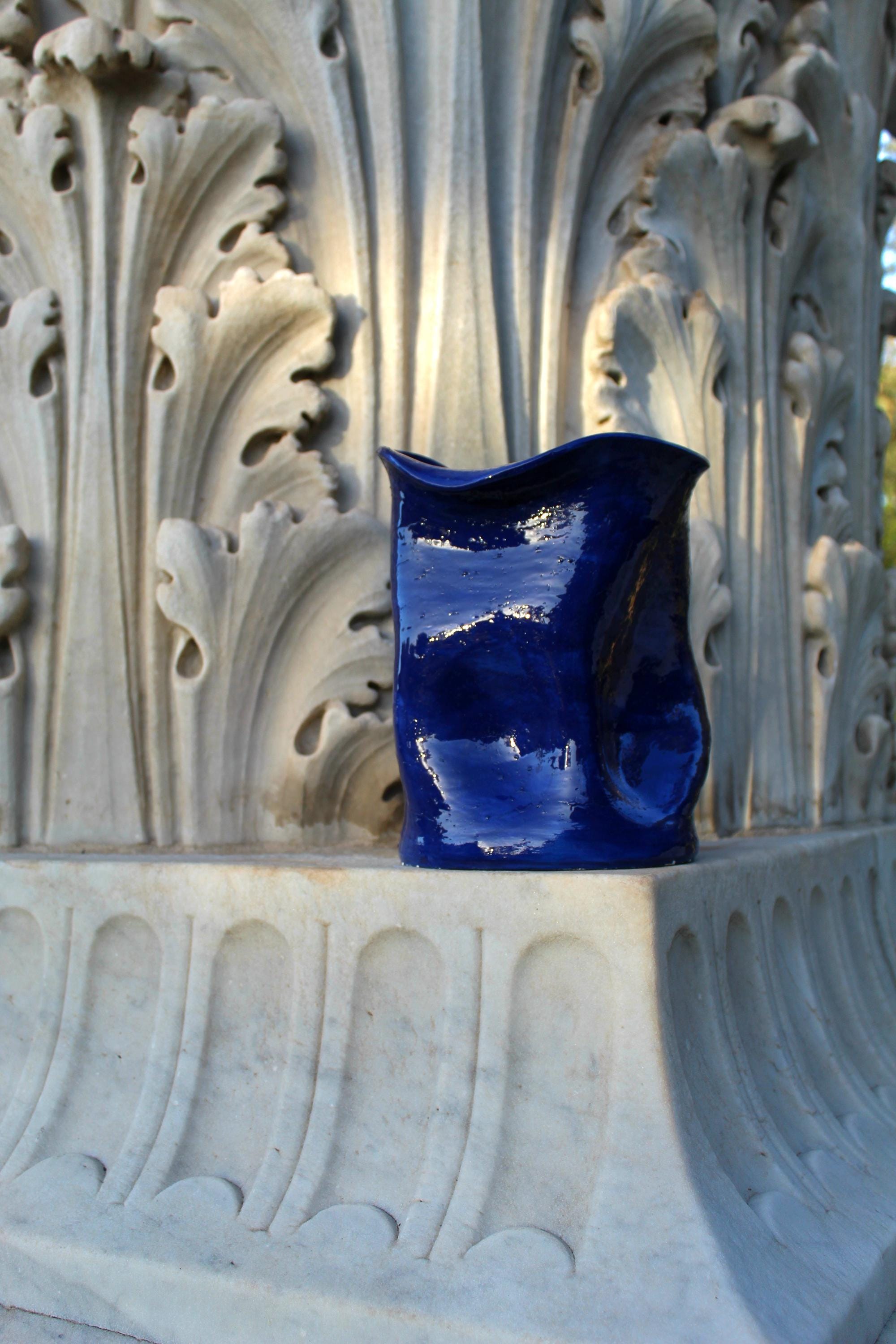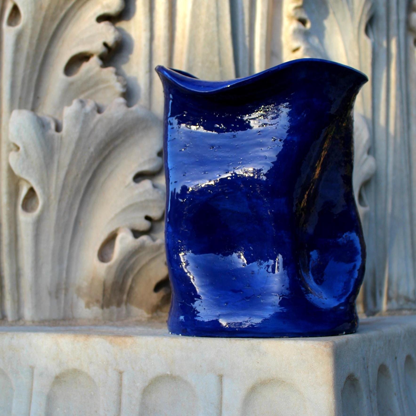 The deep, glossy cobalt blue enamel reflects the light in dynamic ways, highlighting every curve. Perfect as a decorative vase, centerpiece, or artistic sculpture, Blu brings personality and harmony to living rooms, studios, offices, or minimalist-chic spaces.