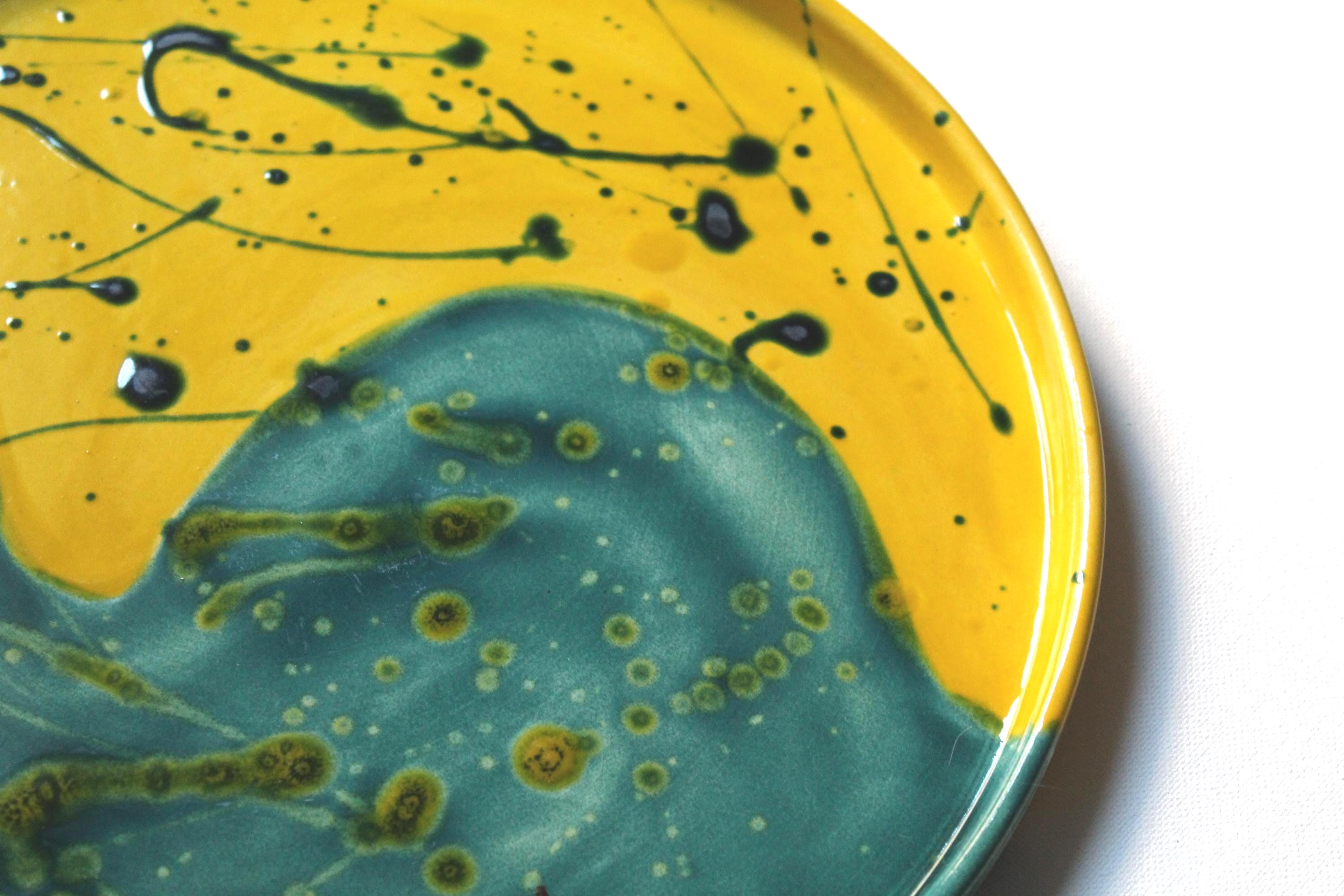 Each plate is unique, thanks to the artisanal craftsmanship and glaze drippings that create ever-changing textures and designs—a true work of art for the table or display. Perfect for decorating your kitchen, as a centerpiece, or as a gift for anyone who loves contemporary design and artistic craftsmanship.