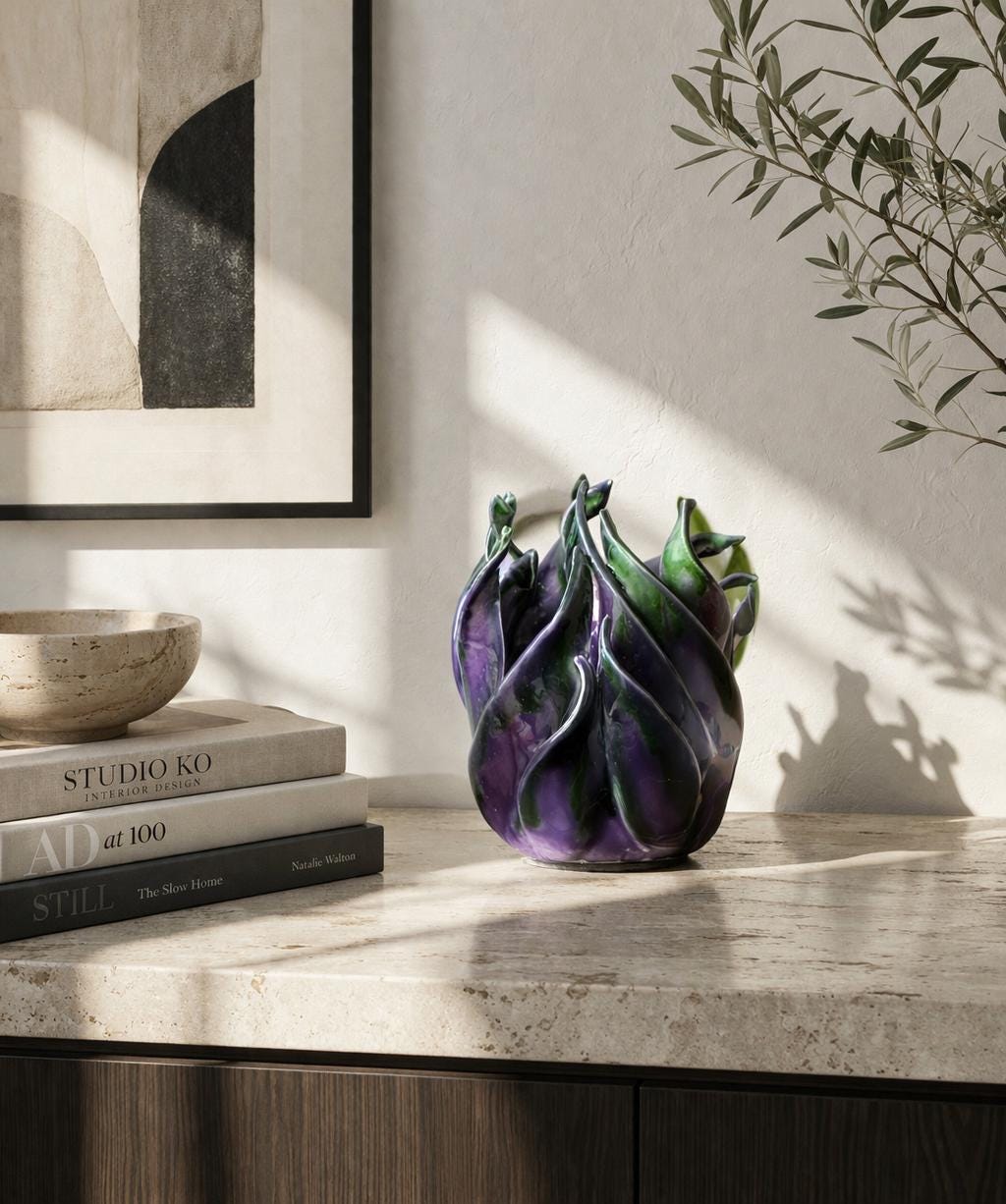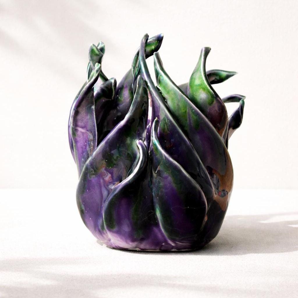 It is not just a sculpture: it is a fragment of solid light, a presence that changes with the environment. Perfect as a decorative object, centerpiece or contemporary interior sculpture. “Iride” captures light, transforms it and returns it. A piece that speaks of balance, fluidity and wonder. Handcrafted by L’Avventurina Ceramiche ✨