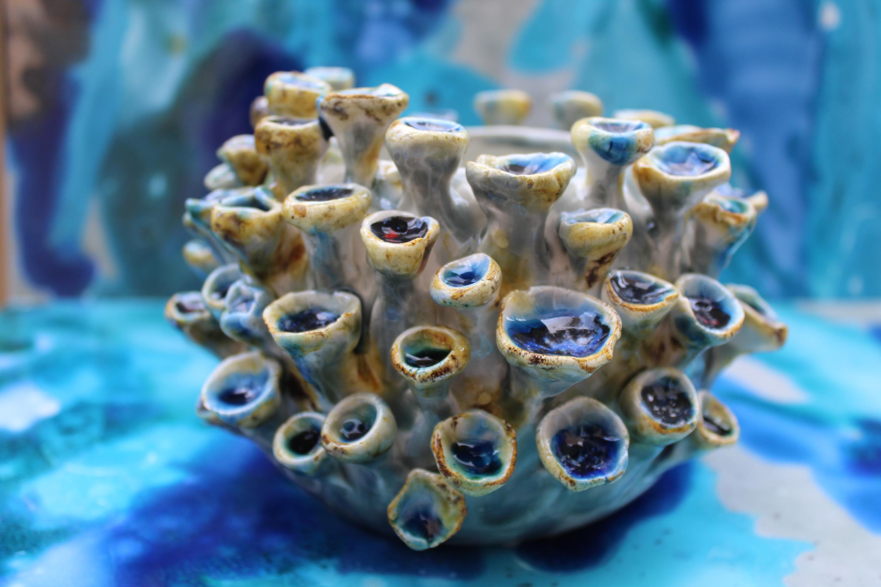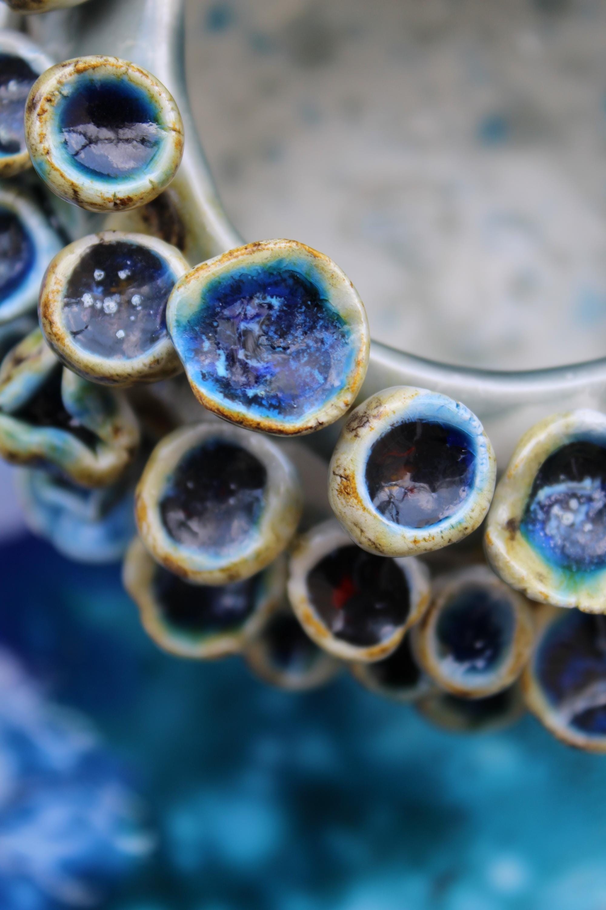 The Alma Marina piece is a handcrafted ceramic creation inspired by organic shapes and the fluid movement of the sea. Each element is carefully modeled by hand, resulting in a sculptural form enriched with tactile details and subtle variations that make every piece truly one-of-a-kind.